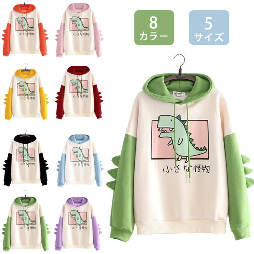 パーカー フード付きパーカー プルオーバー 恐竜 スウェットパーカー メンズ レーディズ カップル 家族 おしゃれ プルオーバー トレーナー 秋服 長袖 フード ゆったり 多彩ブラックグリーンカジュアル 春 秋 冬 ファッション 8色 5サイズ ハロウィン衣装 送料無料