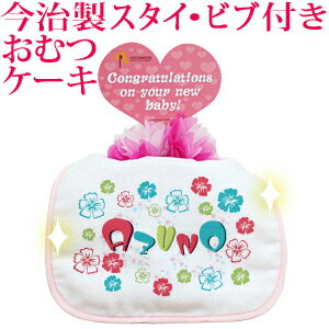 名入れデザイン無料&ラッピング無料おむつ8枚入りのミニサイズのオムツケーキに今治タオルの生地を使ったビブ(スタイ・よだれかけ)がついた当店限定のプチギフト♪