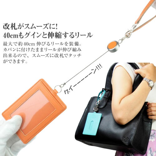 鞄にパスケースを取り付けているときに、鞄から外さなくてもリールを伸ばせば改札タッチが可能です。