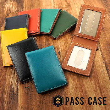 【名入れ対象商品】パスケース 二つ折り 三面 定期入れ メンズ レディース 本革 牛革 icカード ケース スライド窓 クリアポケット付き カジュアル ビジネス ゆうパケット