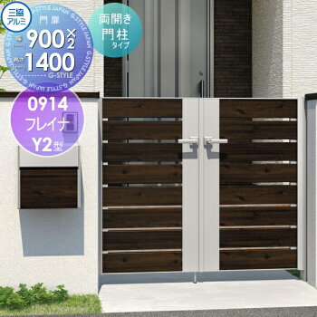 形材門扉三協アルミ 三協立山フレイナY2型形材門柱タイプ 両開きセット 門柱タイプ木調タイプ0914 W900×H1400(扉1枚寸法)打掛錠ガーデン DIY 塀 壁 囲い 境界 屋外