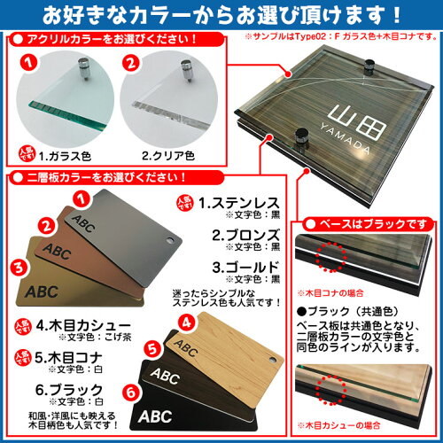 【ポイント5倍】ネームプレート 二層板表札 クリスタル Type10:2点ビス仕様【サイズ:110×110mm】 イメージ画像:Fデザイン(5木目コナ) YKKap ルシアスポストユニット 三協アルミ ステイム 機能門柱 機能ポールにも取り付け可能 貼り付けタイプ 表札