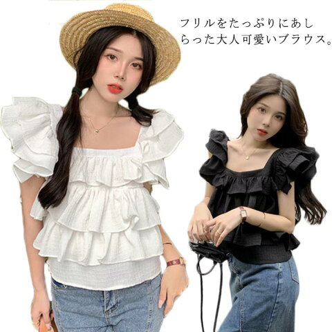 送料無料 レディース トップス 半袖 ブラウス 着痩せ パフスリーブ リボン リボン襟 体型カバー 無地 上品 普段着 着回し 女性 黒 ブラック 白 ホワイト オフィスカジュアル 大人可愛い 春 夏 個性的 きれいめ Vネック 変形 バックシャン ドールカラー 韓国