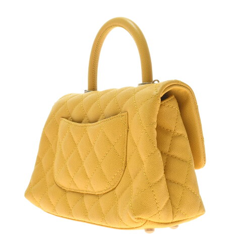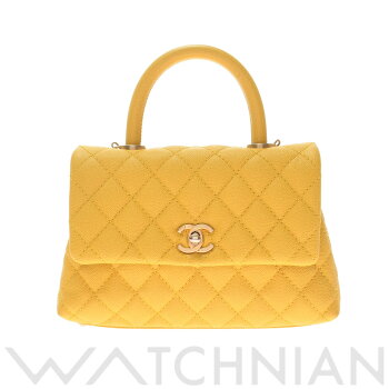 【中古】 シャネル CHANEL マトラッセ ココハンドル 2WAYチェーンショルダー イエロー/ゴールド金具 A92990 キャビアスキン レディース ハンドバッグ