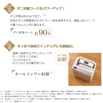 ・ダニ対策コースもパワーアップ! ・すっきり収納でインテリアにも馴染む。